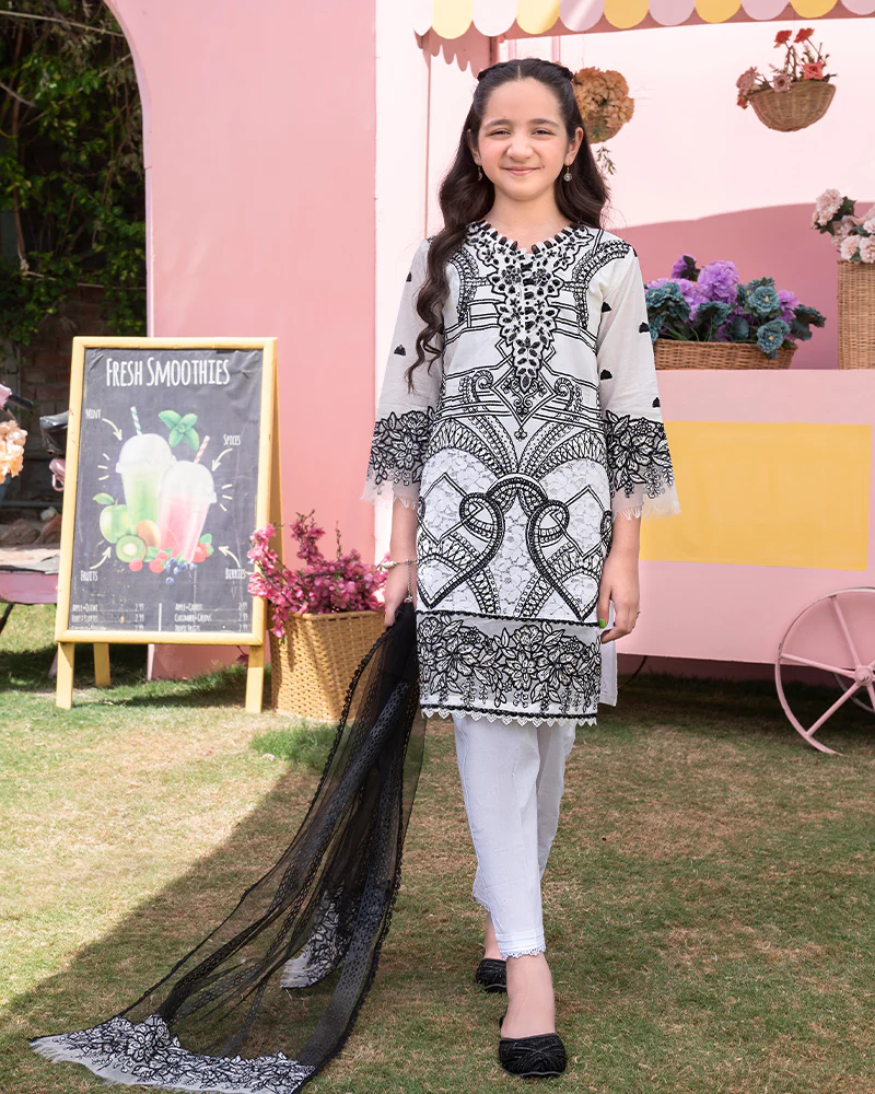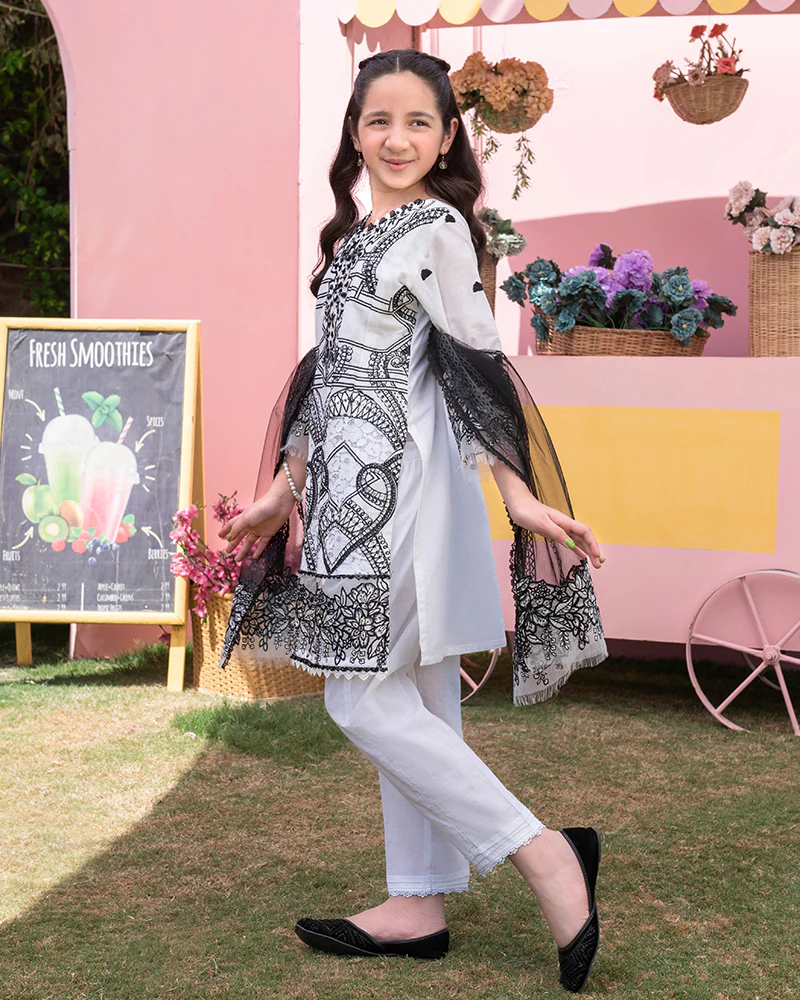 Allys 3Pc Embroidered Cotton Kids SuitAL-1062(White)