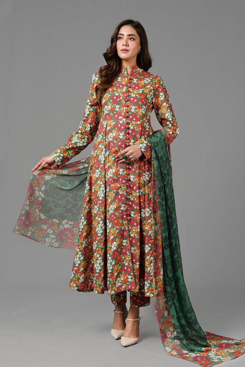 Bareeze 3 Piece Printed Khaddar Suit (PR1547-Green)