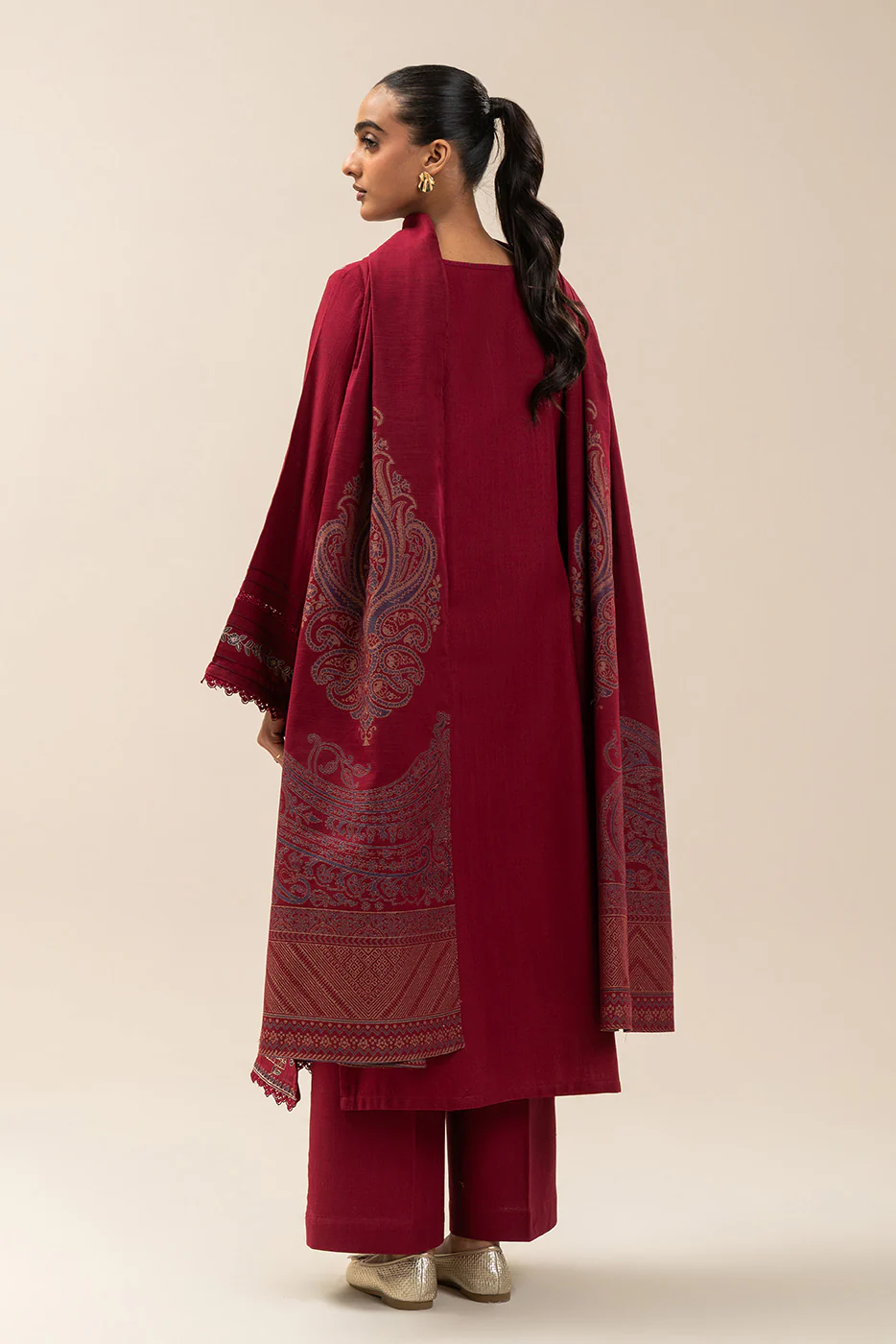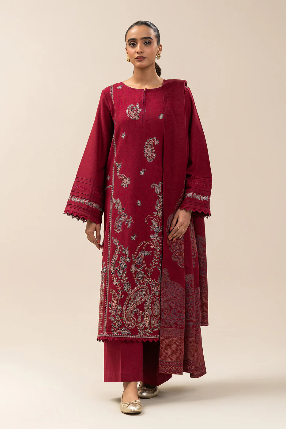 Beechtree 3Pc Embroidered khaddar Suit GARNET GLAM