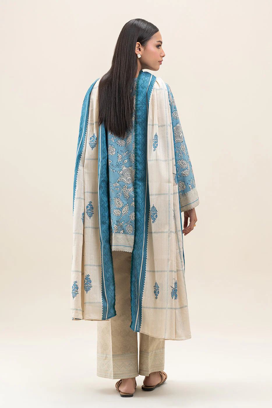 Beechtree 3Pc Printed Lawn Suit STEEL BLUE