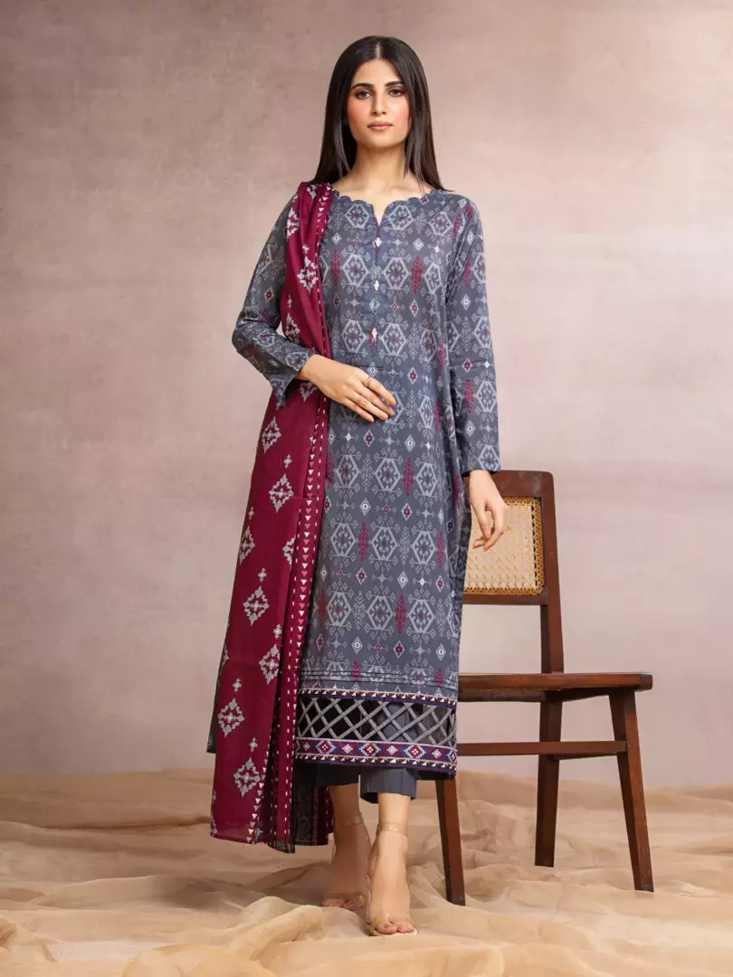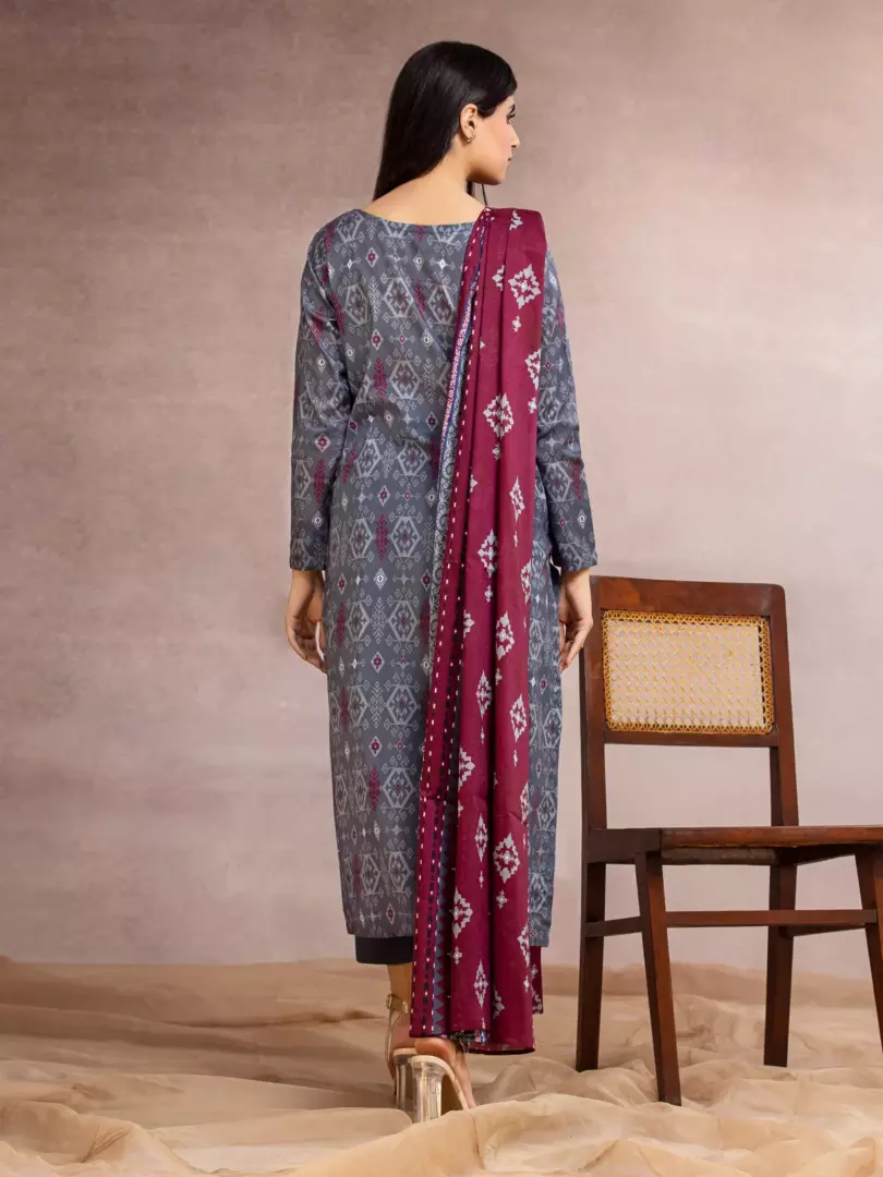 Edenrobe 3 Piece Printed Khaddar Suit (EWU23A3-27155)