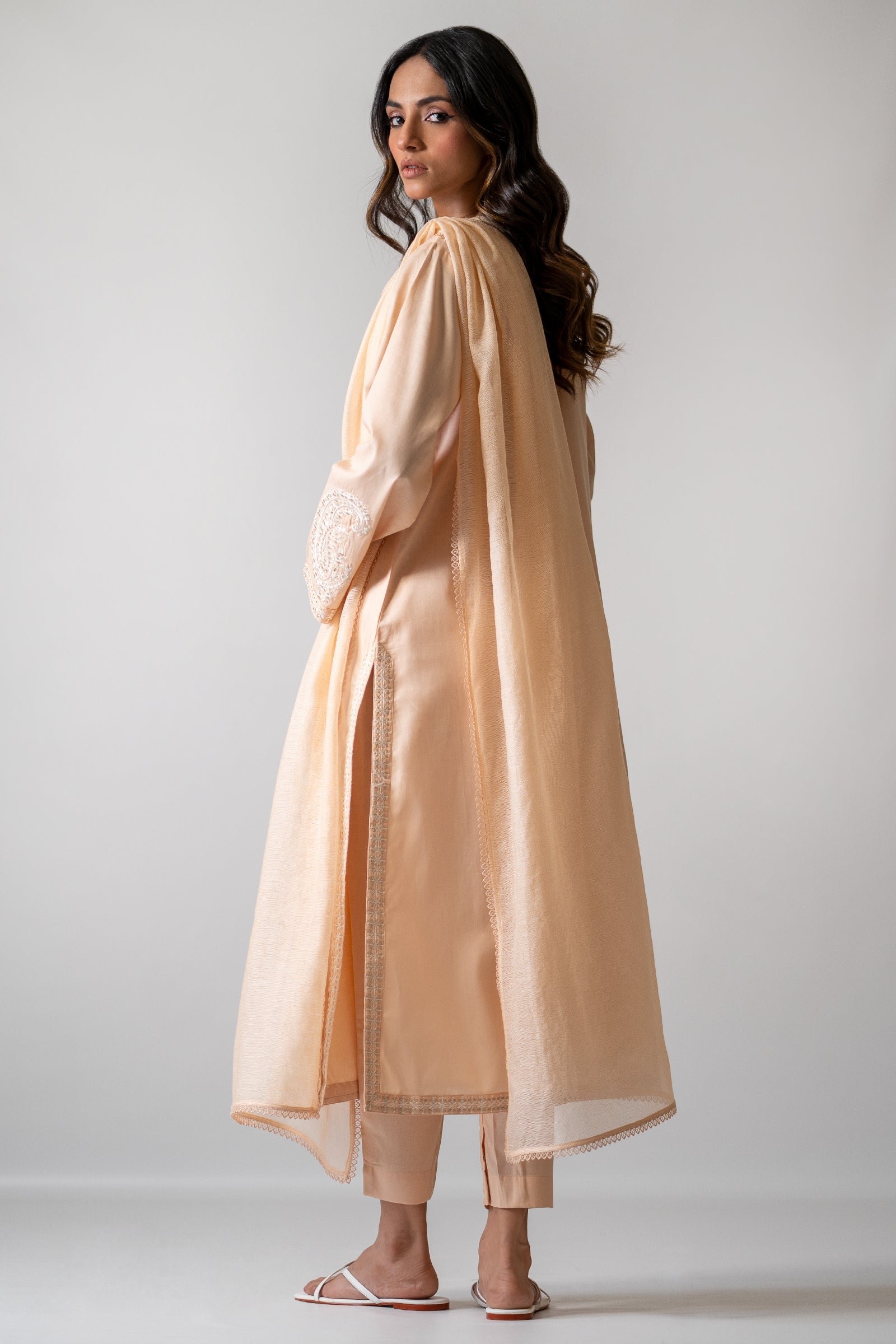 This festive season, look simply gorgeous in this intricate embroidered kurta paired with pants?and?dupatta.