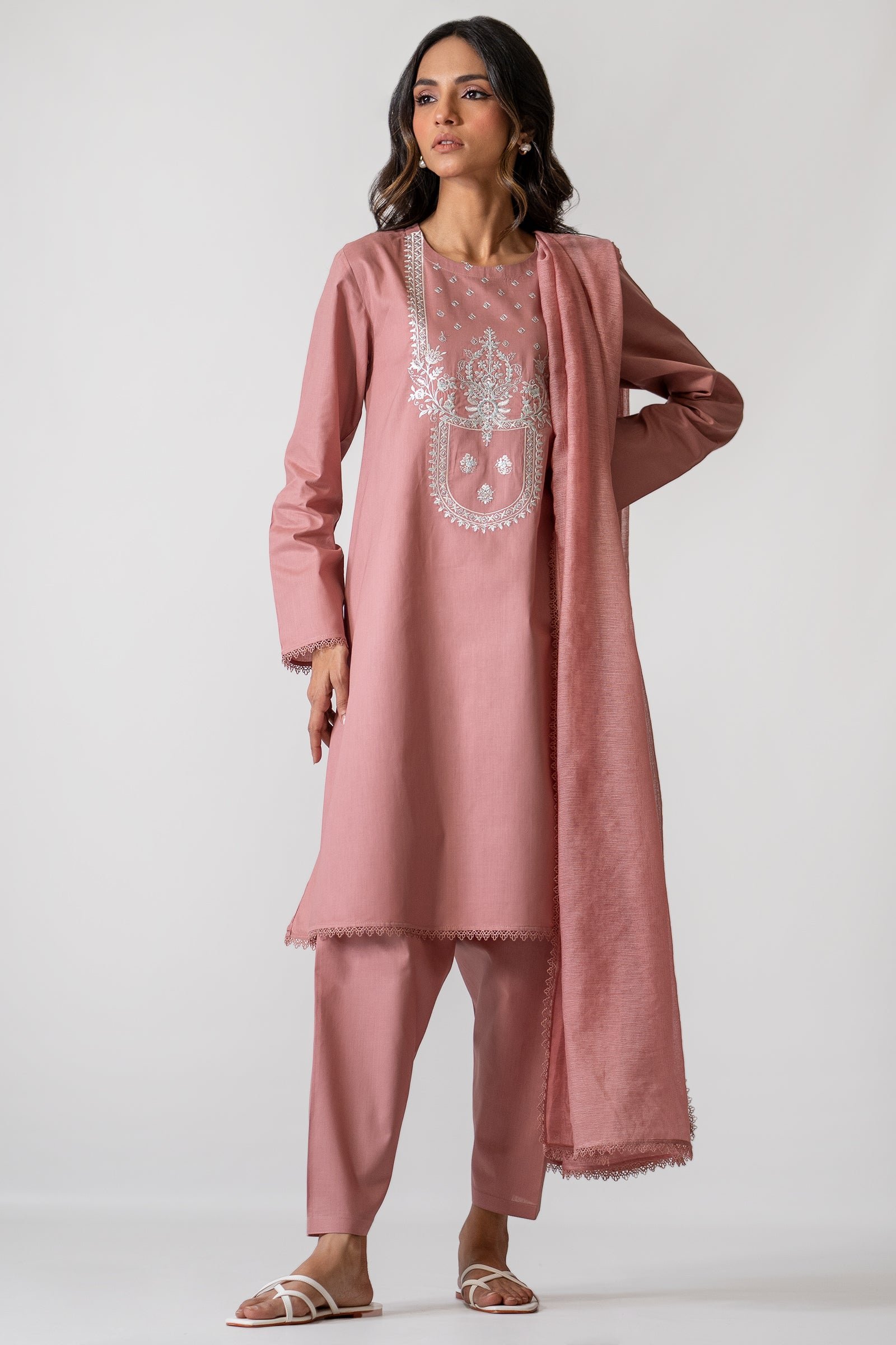 Embrace beauty this Eid with our embroidered kurta, dupatta paired?with?shalwar.