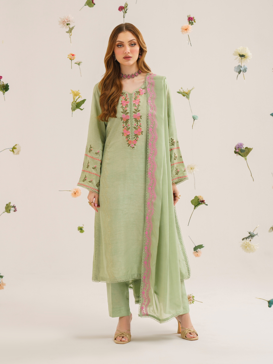 GARNET 3 PIECE EMBROIDERED RAW SILK SUIT (HALAH)