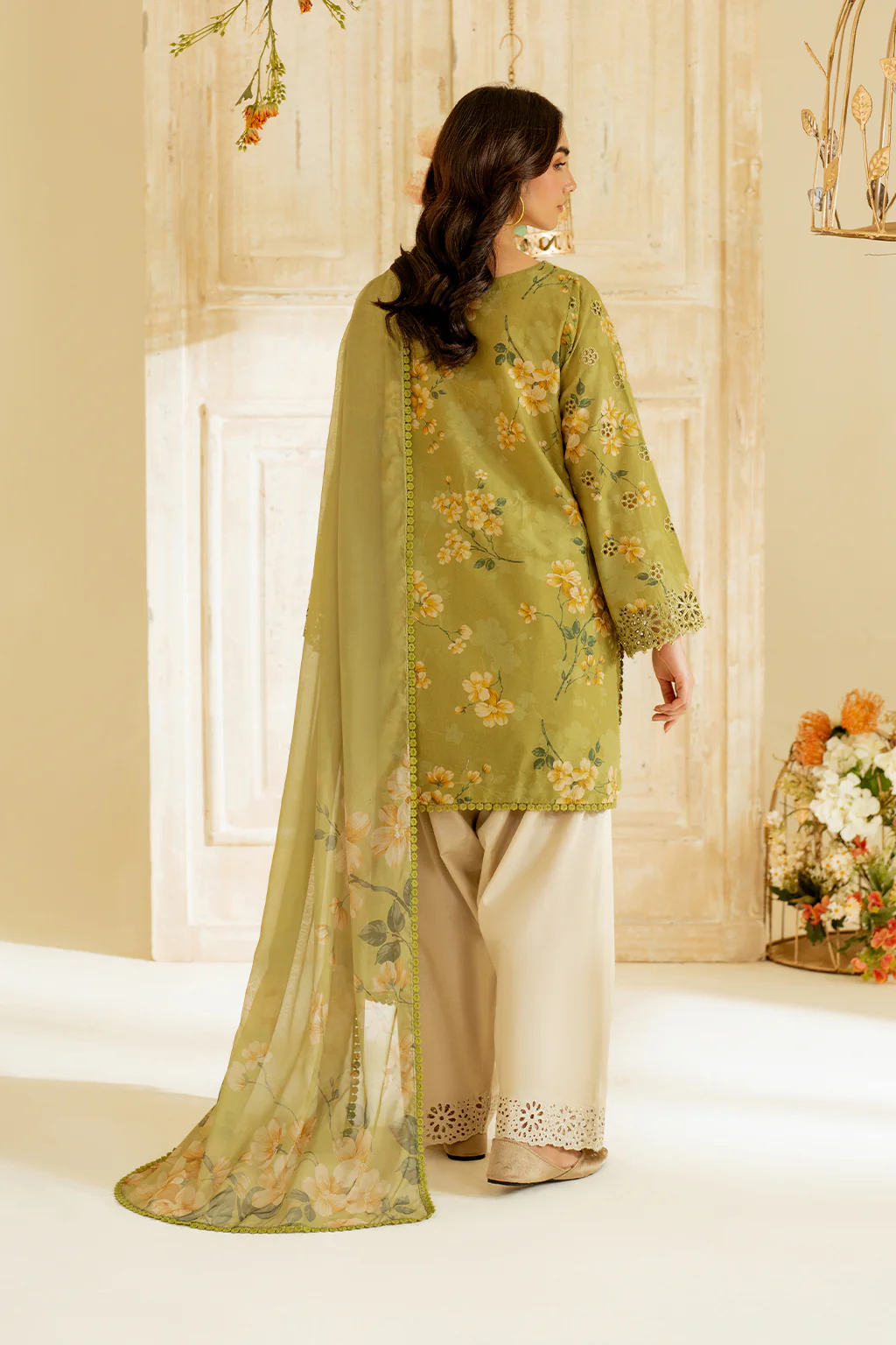 Neckline: Borer Embroidered Organza