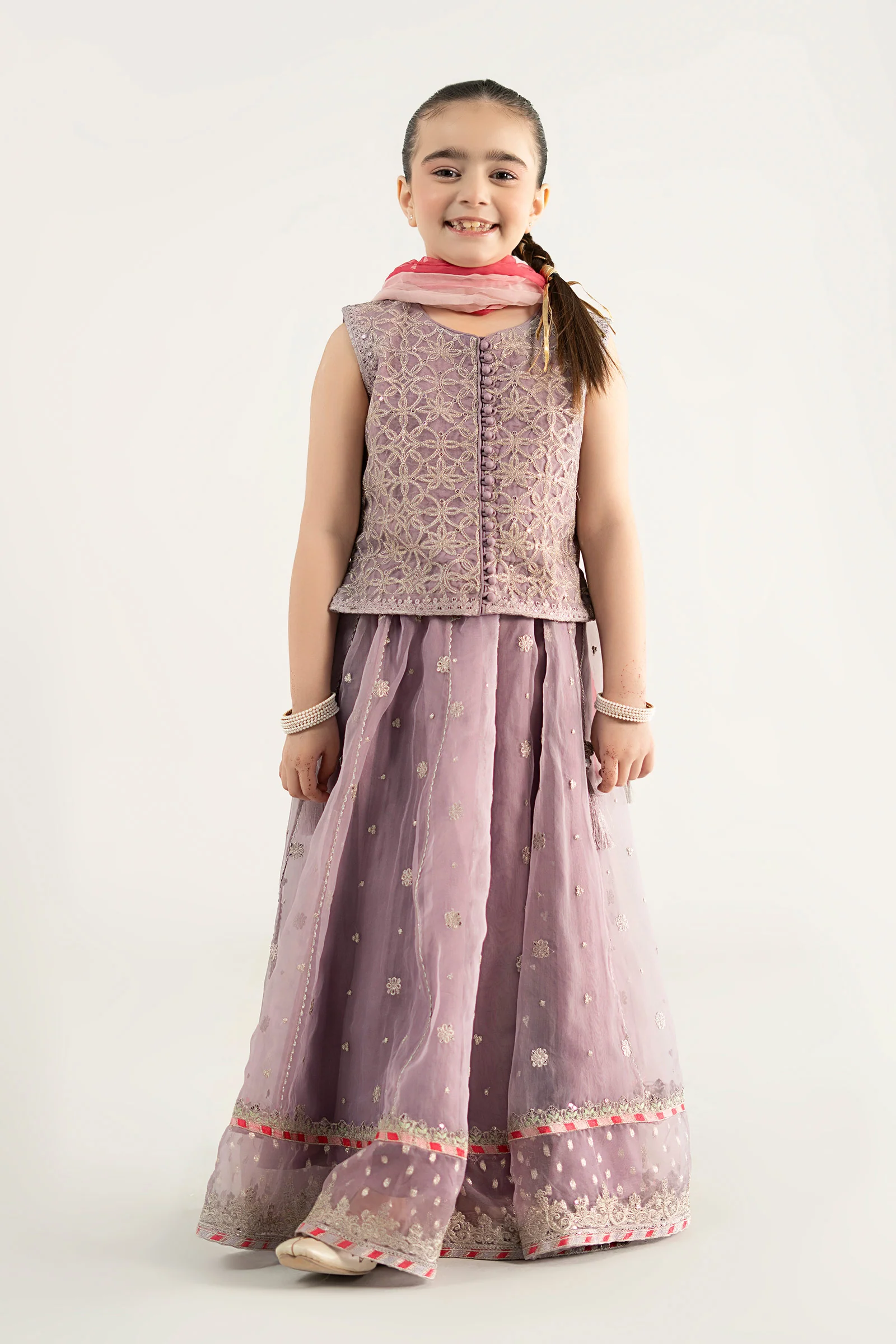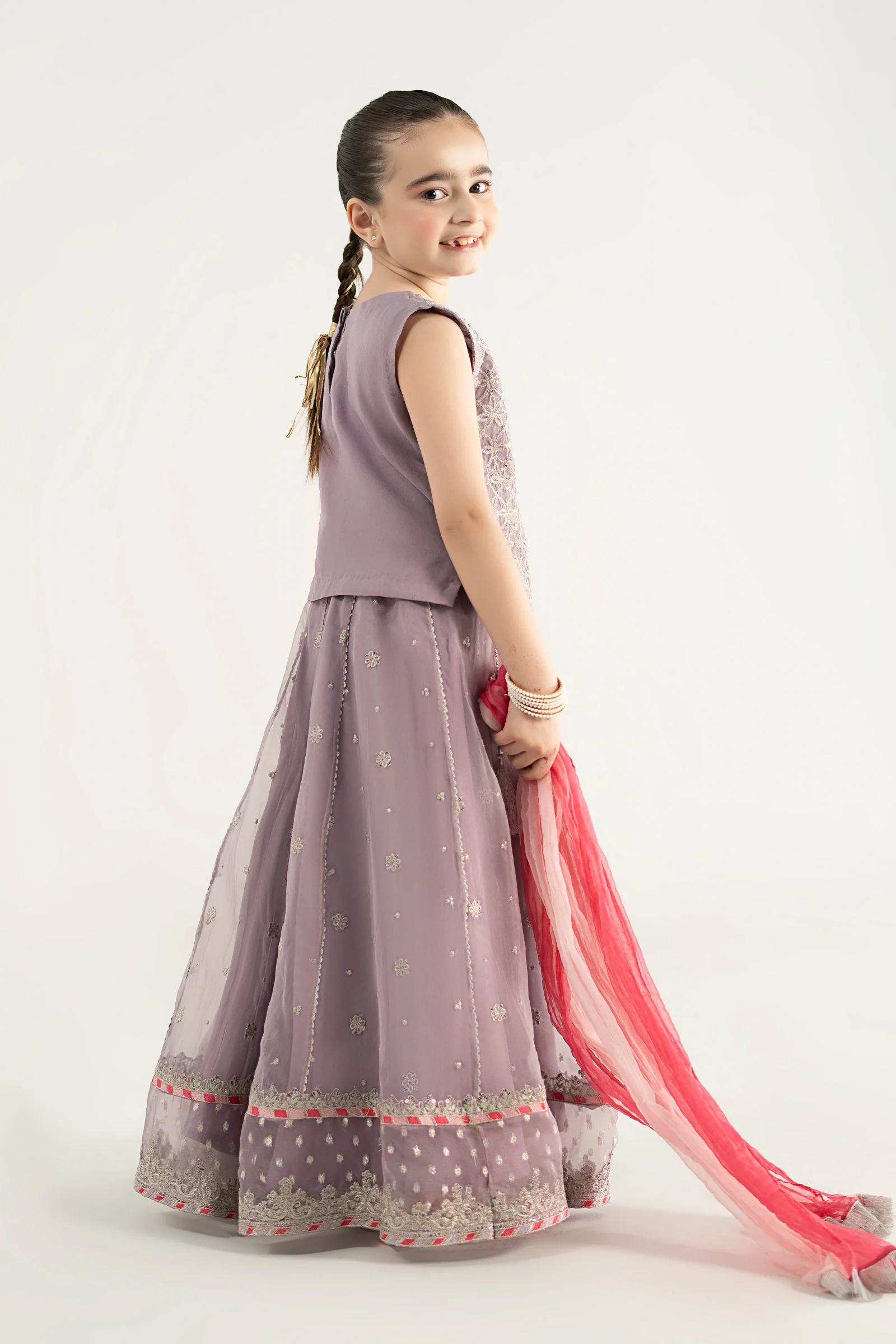 Maria.B 3Pc Embroidered Organza Kids Suit MKS-EA25-42/B-Purple