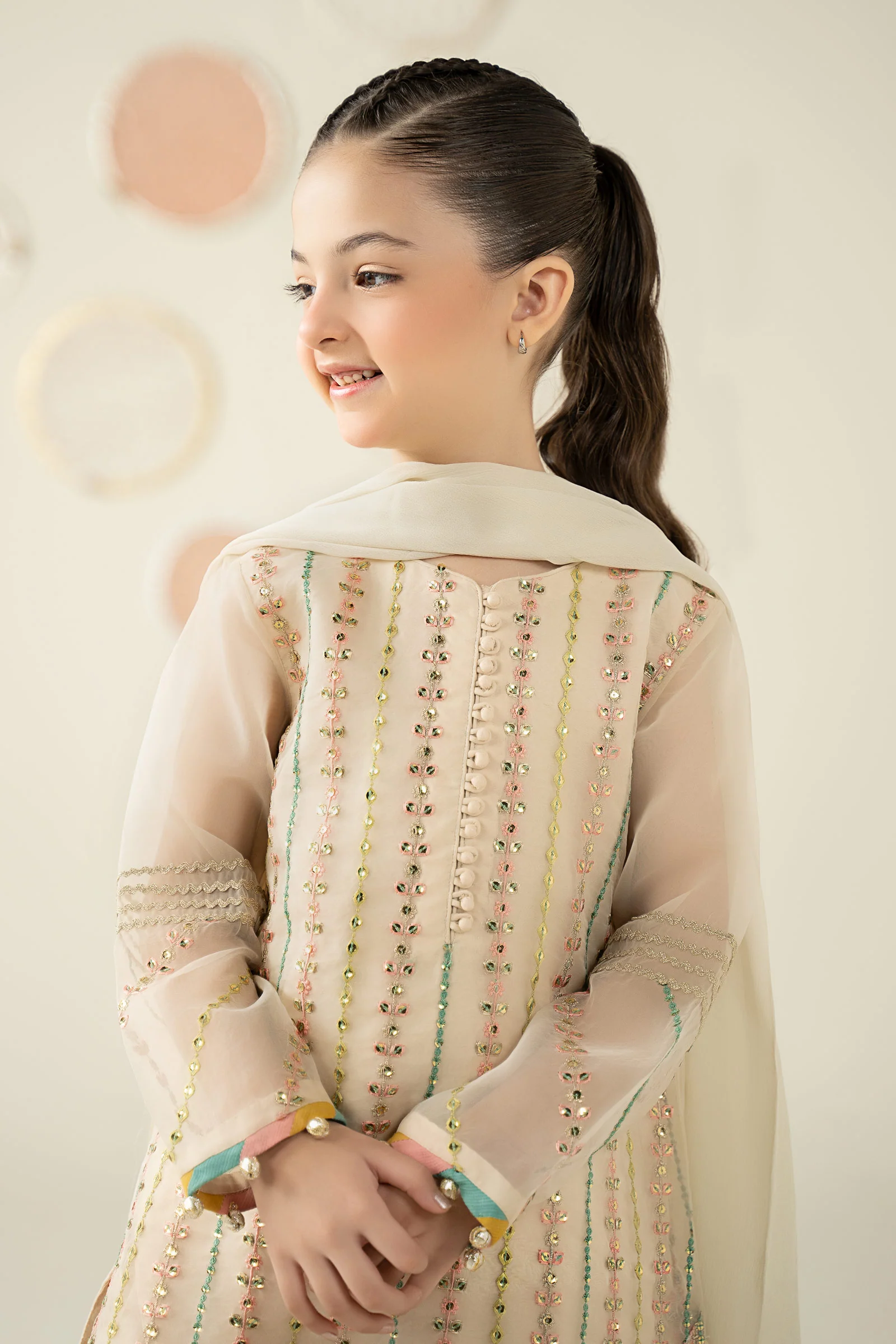 Maria.B 3Pc Embroidered Organza Kids Suit MKS-W25-11-Off White