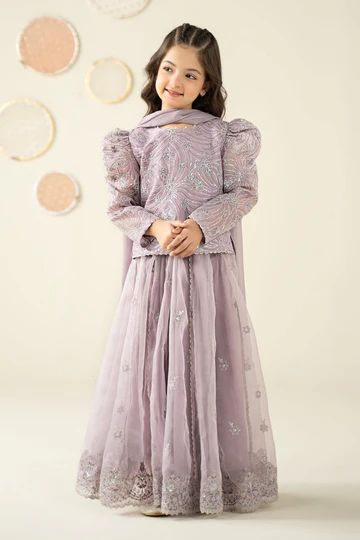 Maria.B 3Pc Embroidered Organza Kids Suit MKS-W25-22-Lilac