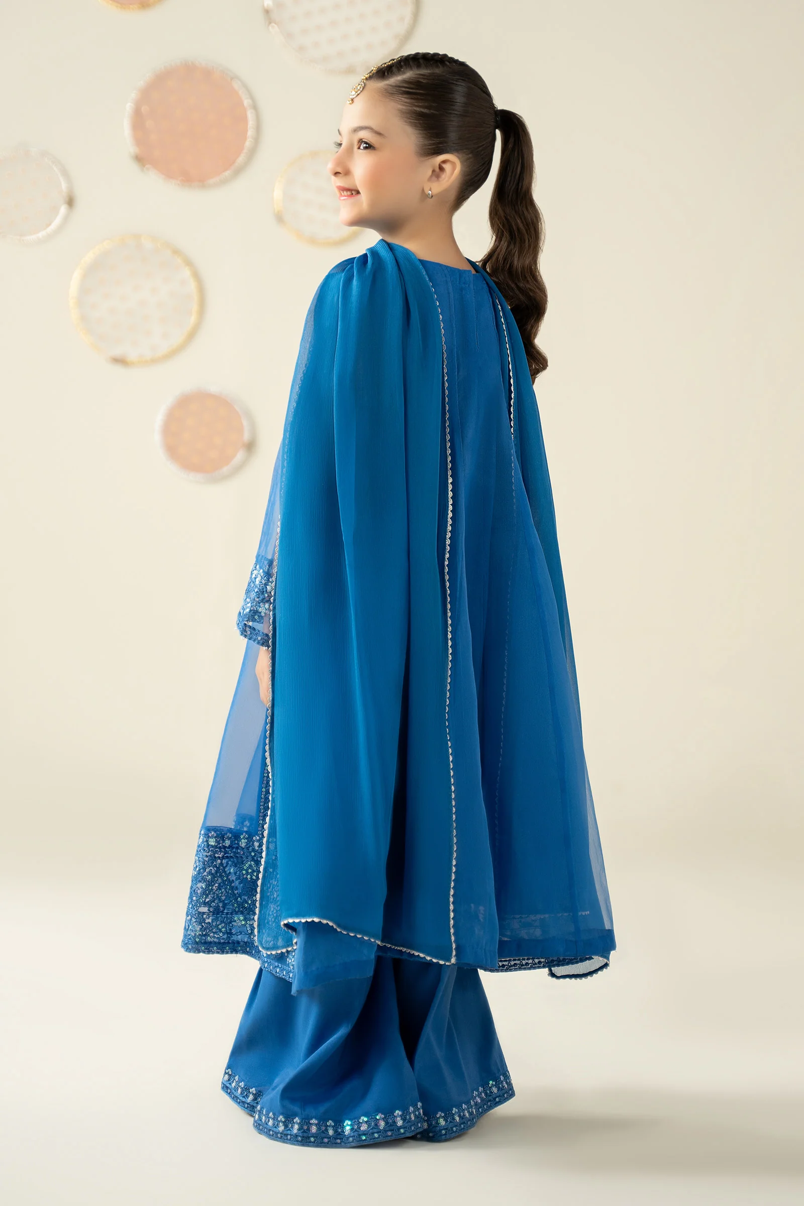 Maria.B 3Pc Embroidered Organza Kids Suit MKS-W25-24-Blue
