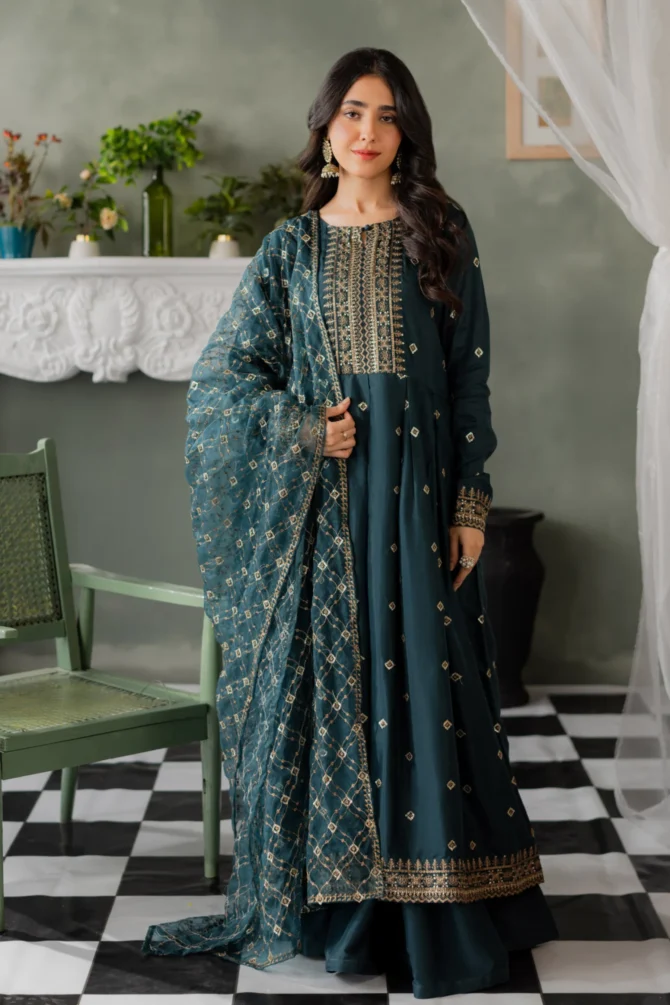 Kastoor 3Pc Embroidered Silk Suit EF-282