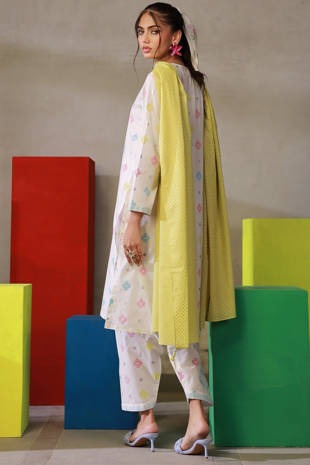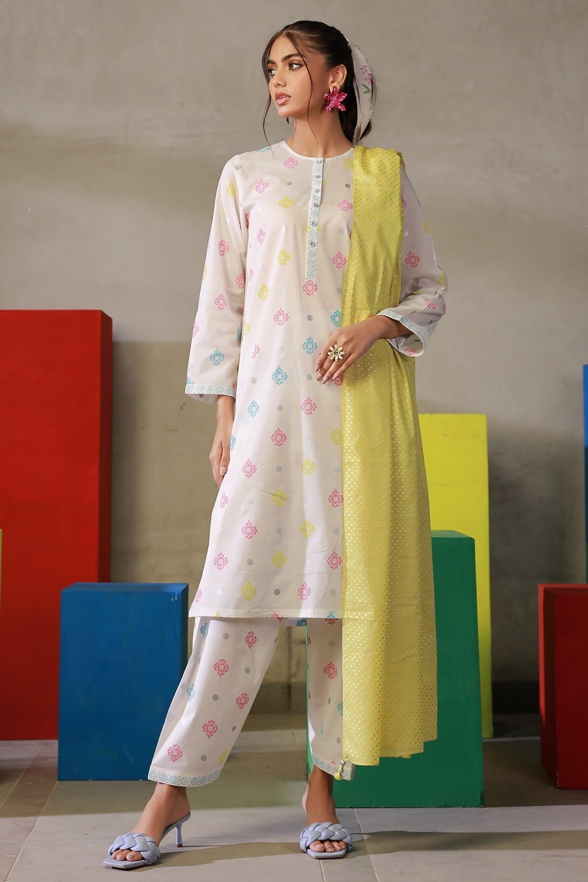 3Pc Lawn Printed Shirt With Printed Dupatta Paired With Trouser