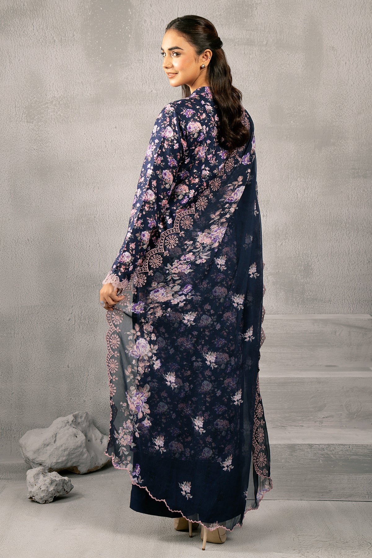Printed And Embroidered Pk Chiffon Dupatta 2.5M