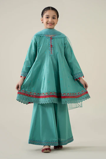 Maria.B 3Pc Embroidered Lawn Kids Suit MKD-EA25-06-Ferozi