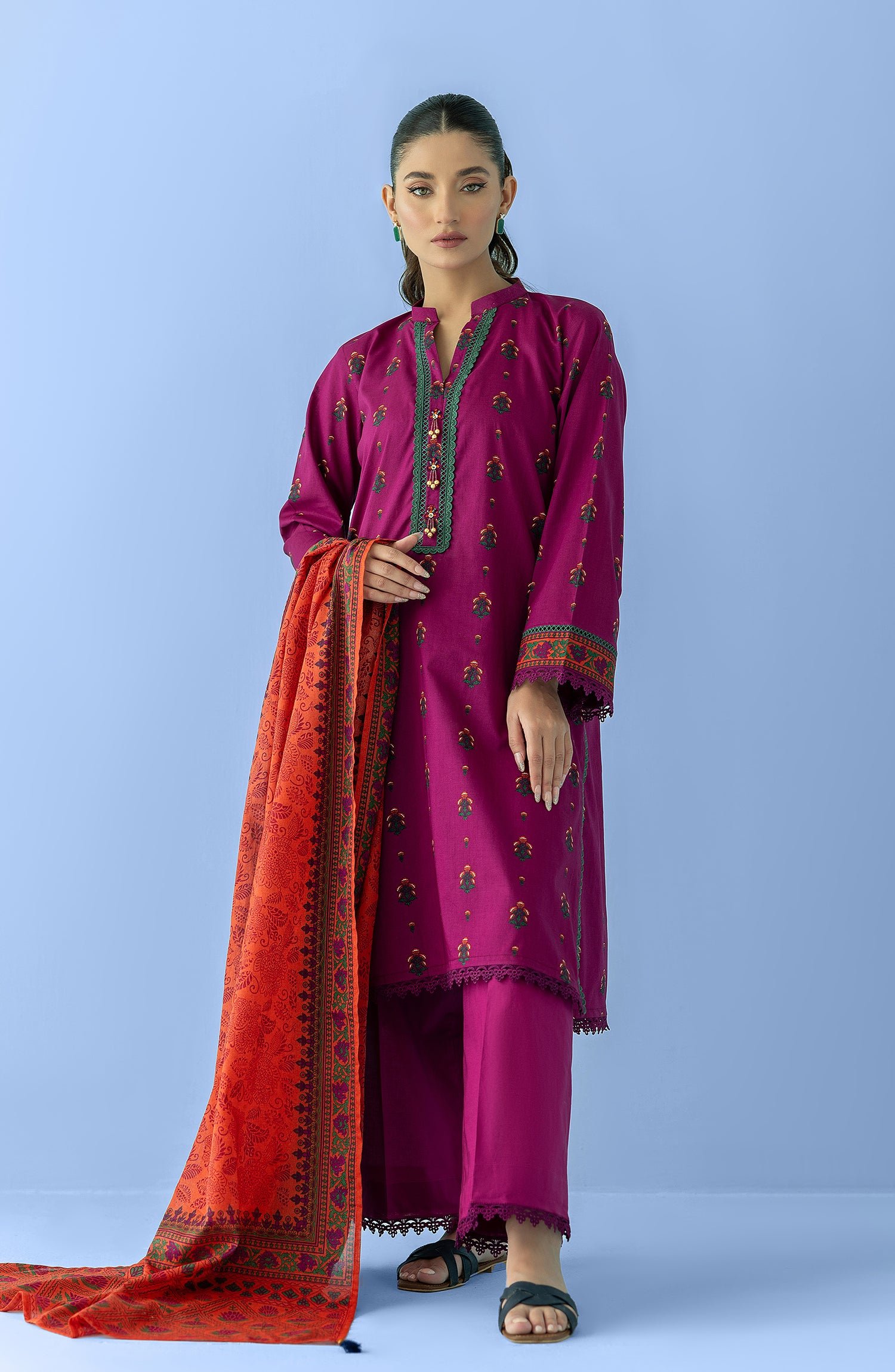 Orient 3 Piece Printed Lawn Suit (OTL-24-067/U-PINK)