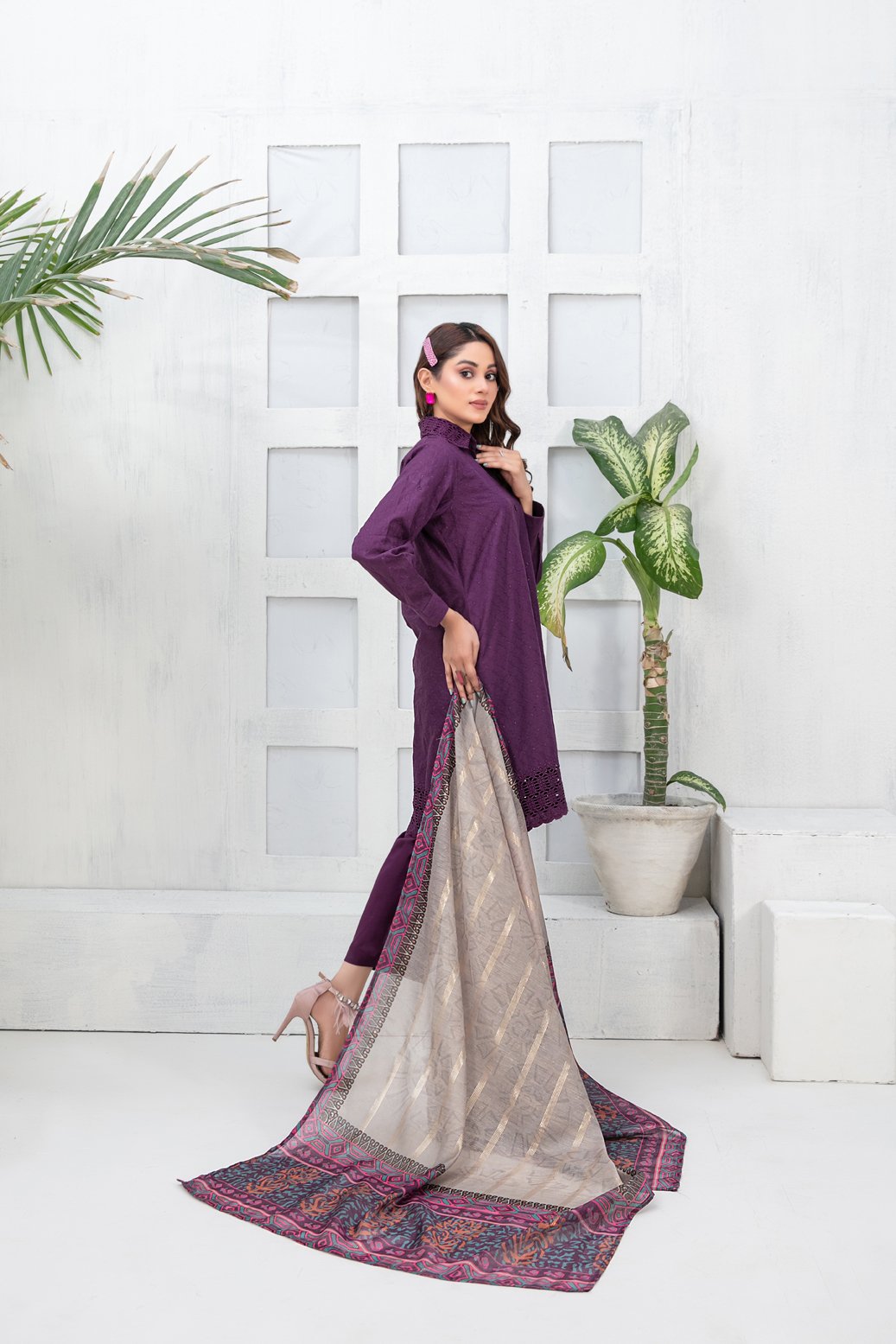 3 Piece Stitched Collection By Tawakkal Fabrics, Attractive & Elegant Lawn Collection comes with:? ? Stitched Schiffli Embroidered Lawn Shirt Designs