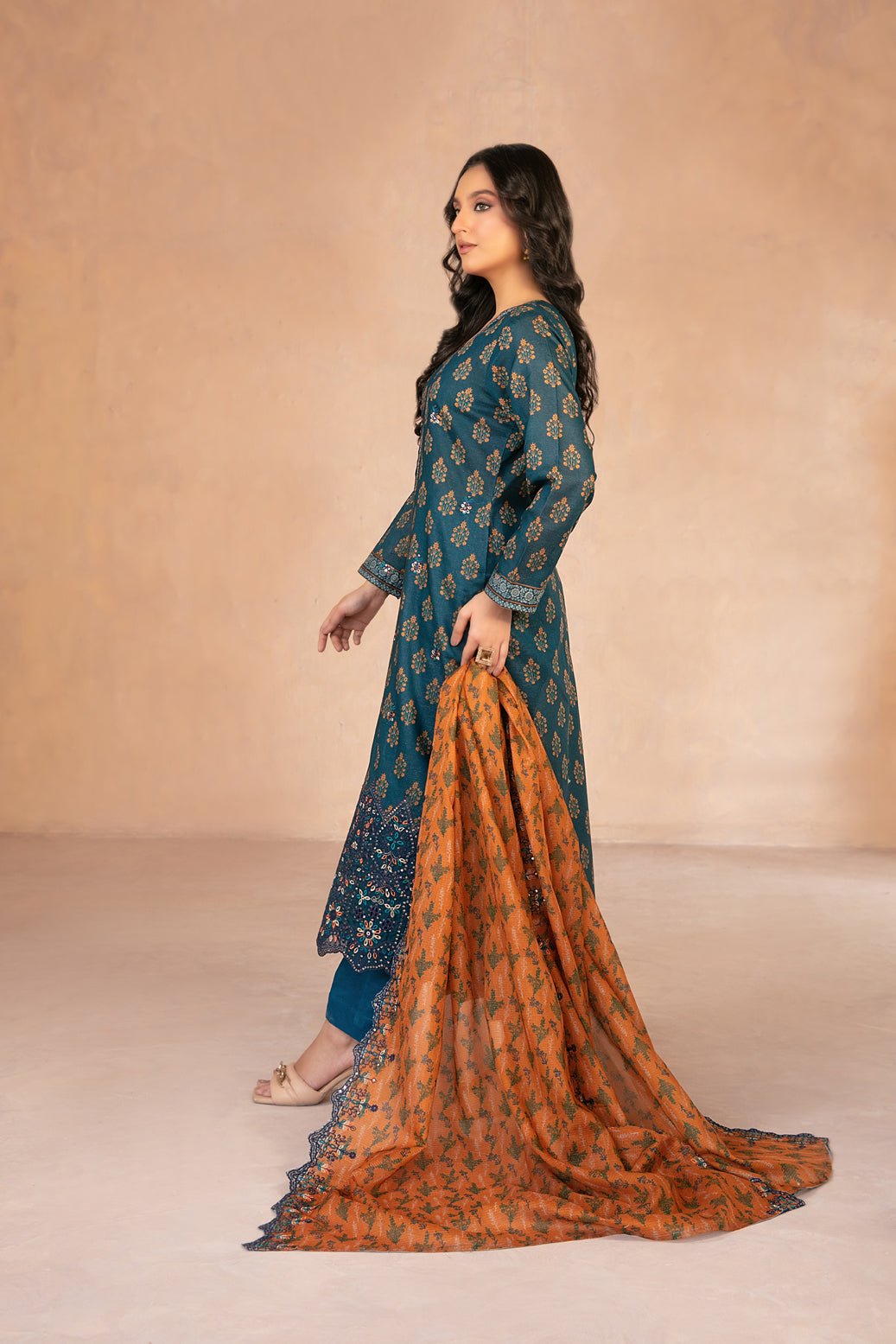 - Cutwork Embroidered Digital Printed Chamki Lawn Dupatta