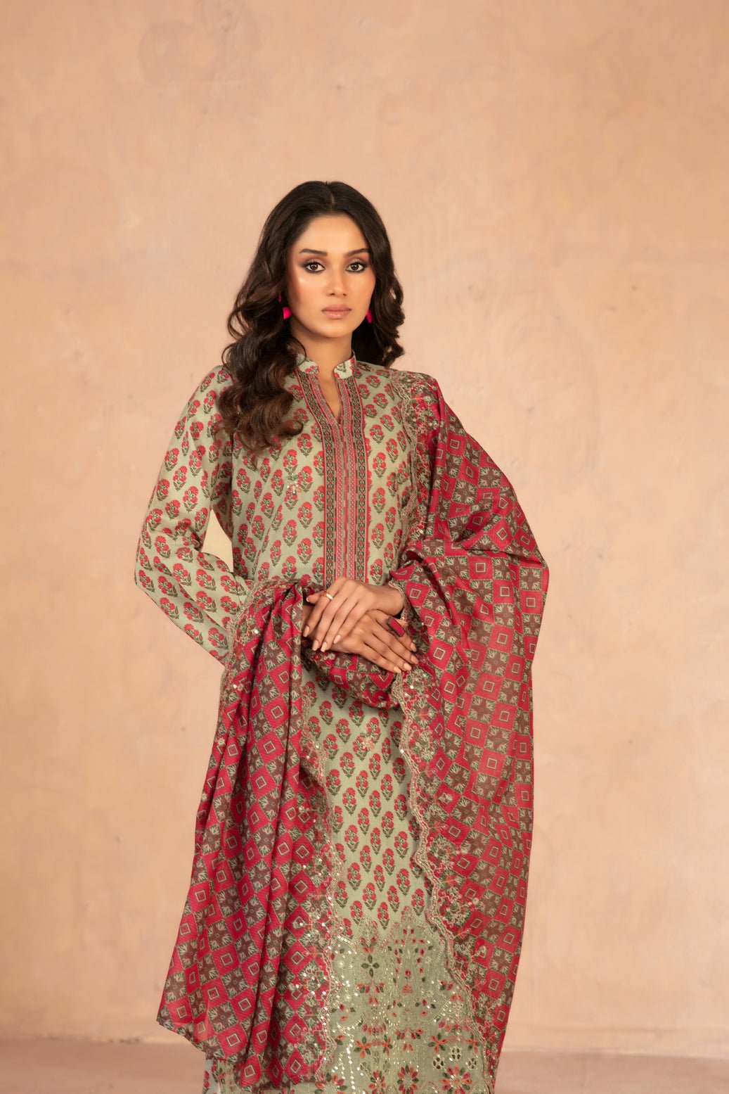 - Cutwork Embroidered Digital Printed Chamki Lawn Dupatta