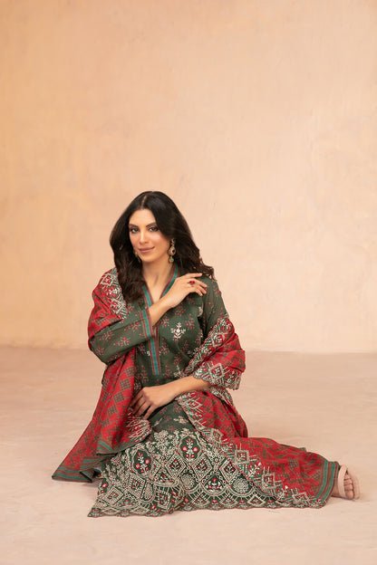 - Cutwork Embroidered Digital Printed Chamki Lawn Dupatta