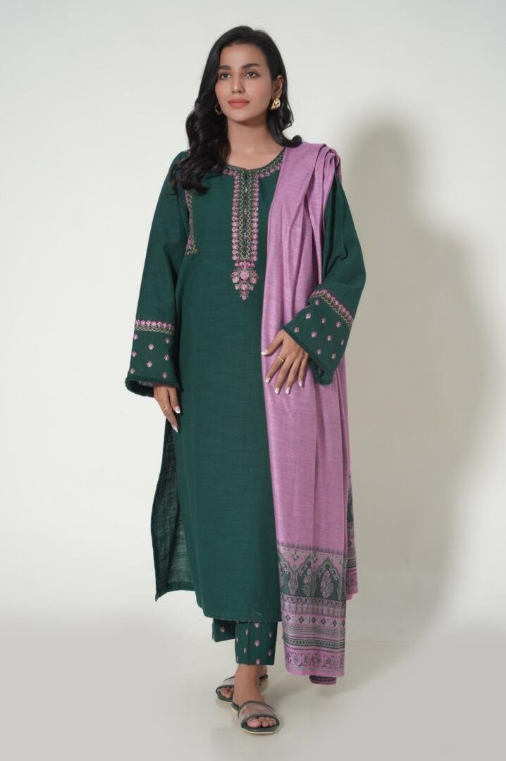 Zeen 3 Piece Embroidered Khaddar Suit (WFM33835)
