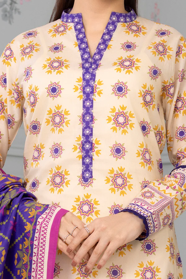 Buy 3 Piece Printed Lawn Shirt Shalwar Dupatta in Off White Color