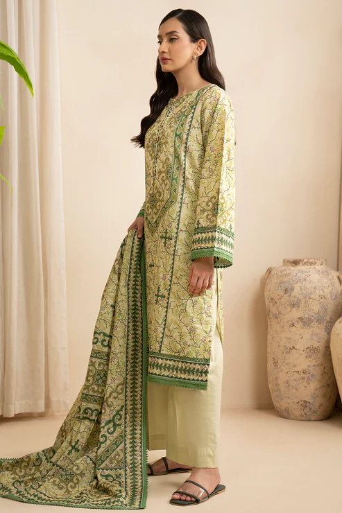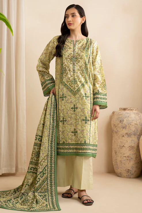 Buy 3 Piece Printed Lawn Shirt Shalwar Dupatta in Light Green Color