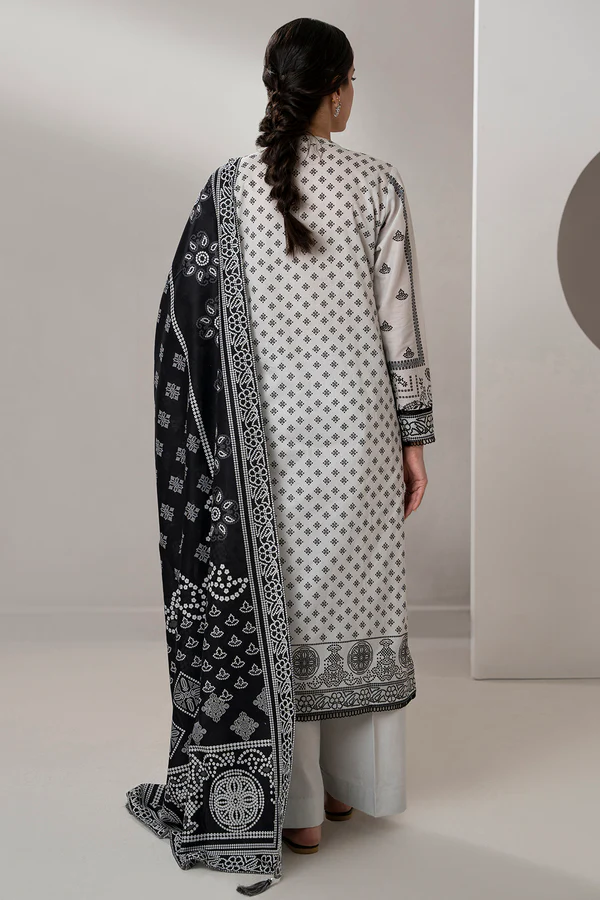 Buy 3 Piece Printed Lawn Shirt Shalwar Dupatta in Light Grey Color Monochrome 25 collection